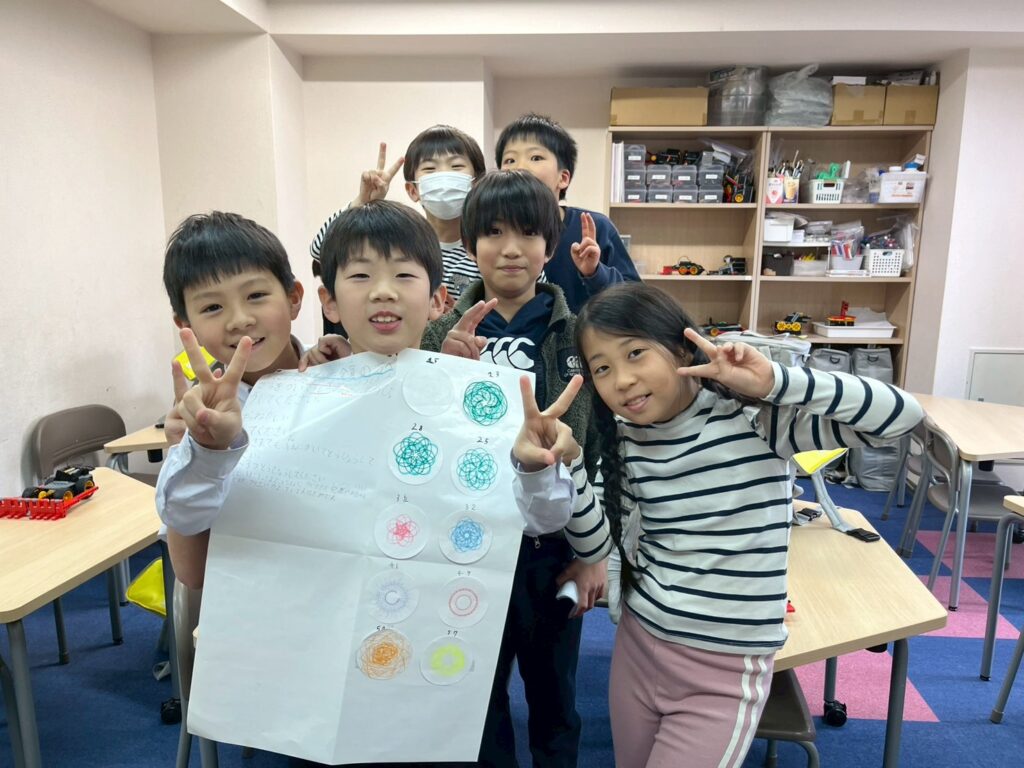 スパイログラフ(幾何学模様を描く道具)を使って、数字の組み合わせによって模様がどう変わるかを探究しながらオリジナルコースターをデザインしました。